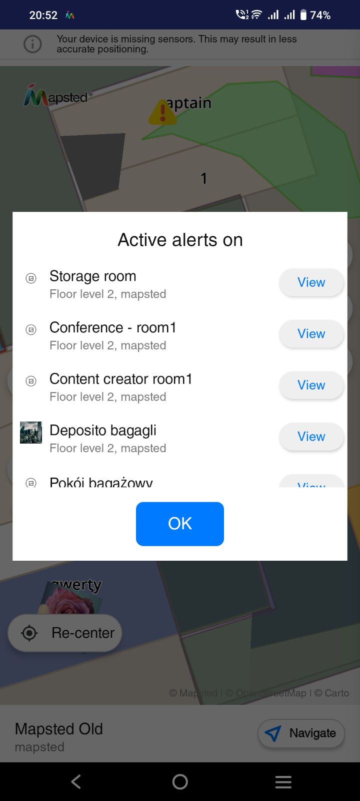 alerts-sdk: This module provides direct integration with the Scheduled and Emergency Alerts which are configured via the Mapsted Manage CMS. The alerts-sdk provides various built-in UI/UX but also incorporates the inapp-notification-sdk UI/UX.